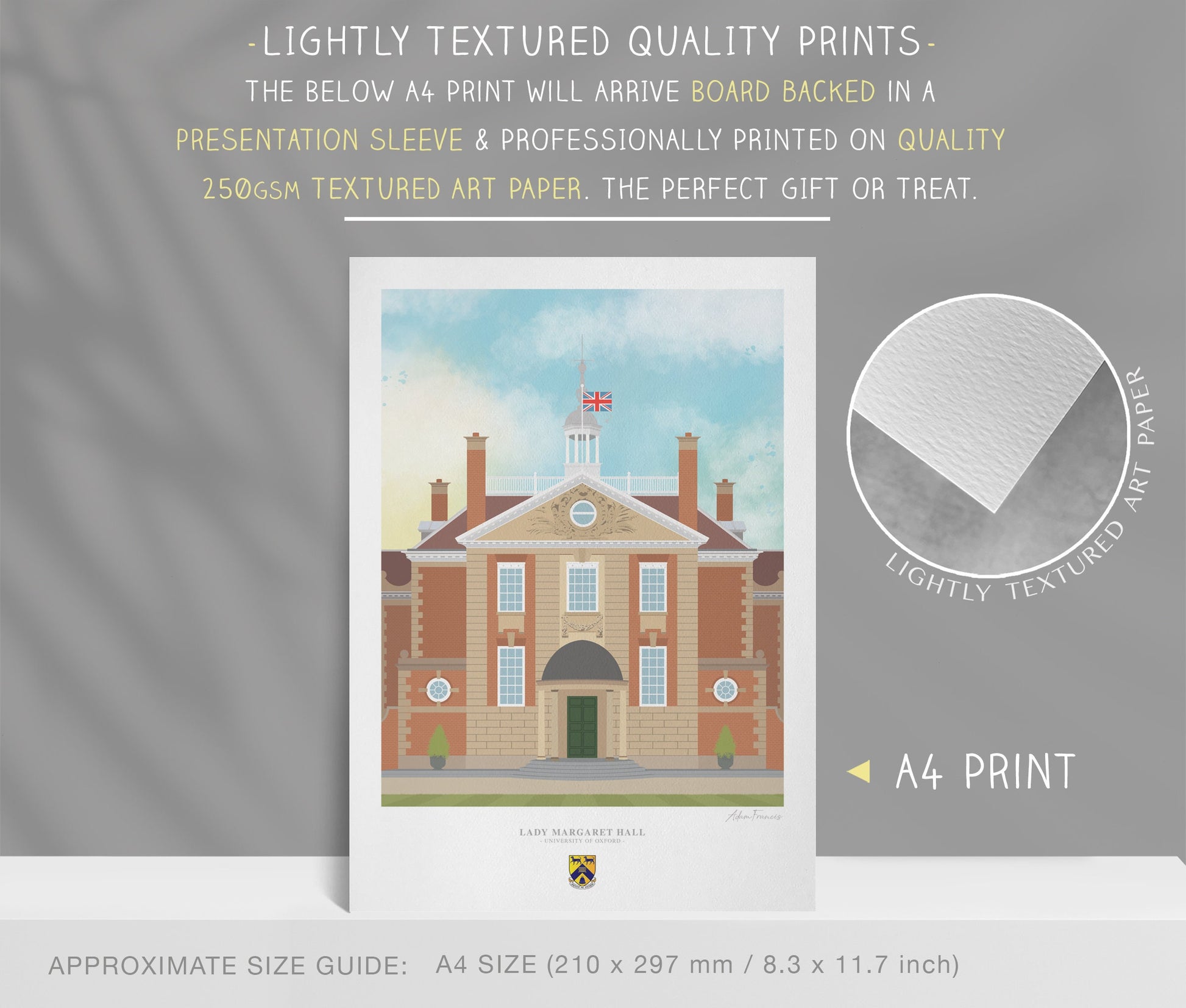 Quality art prints of my Lady Margaret Hall, University of Oxford, illustration.